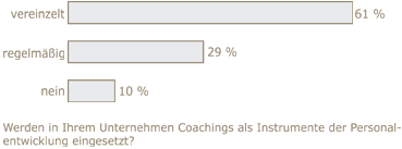 Von den befragten Unternehmen setzen 90 Prozent Coaching als ein Instrument der Personalentwicklung ein, weniger als ein Drittel (29 Prozent) nutzen diese Möglichkeit regelmäßig.