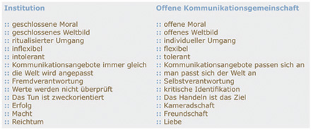 So unterscheiden sich »Institution« und »Offene Kommunikationsgemeinschaft« nach Prof. Lay